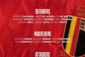 比利时大名单:库尔图瓦领衔,多库、特罗萨德、萨勒马科尔斯入选